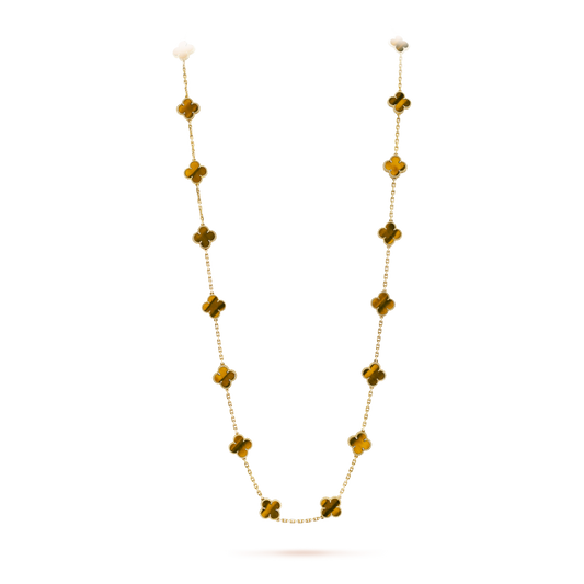 [AuraEcho Jewelry]CLOVER 20 MOTIFS TIGER EYE NECKLACE
